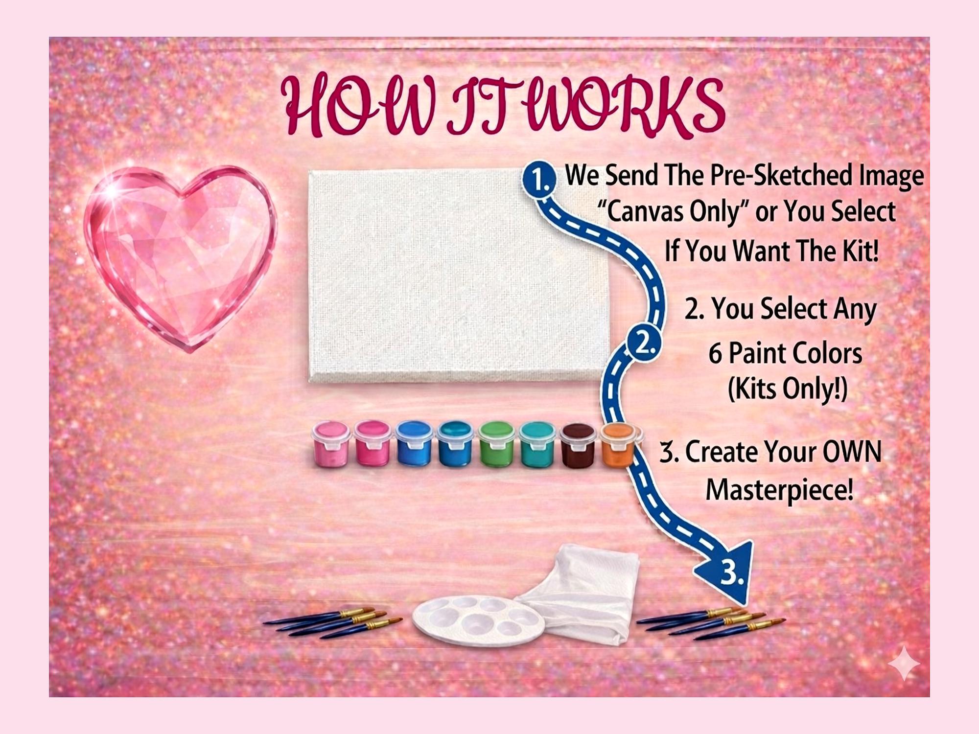***You will not receive paint unless you purchase the "Canvas Kit" so, in the "Personalization Section" type "N/A" if you're purchasing just the "Canvas"***