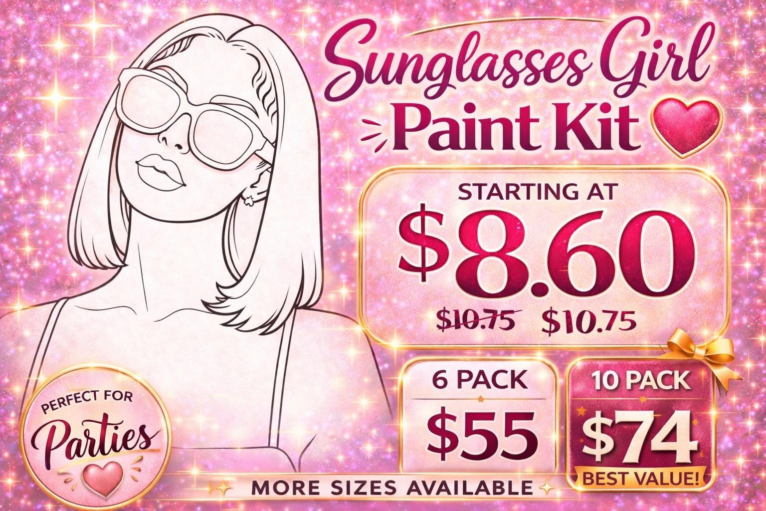 💖 Sunglasses Girl Paint Kit – Perfect for Girls Night & Parties!