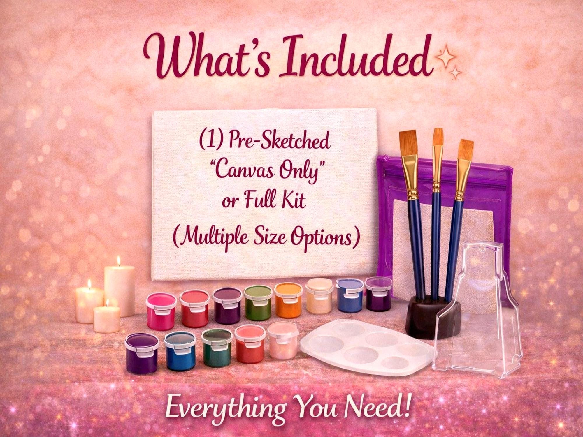 Each Canvas Paint Kit includes, the following: