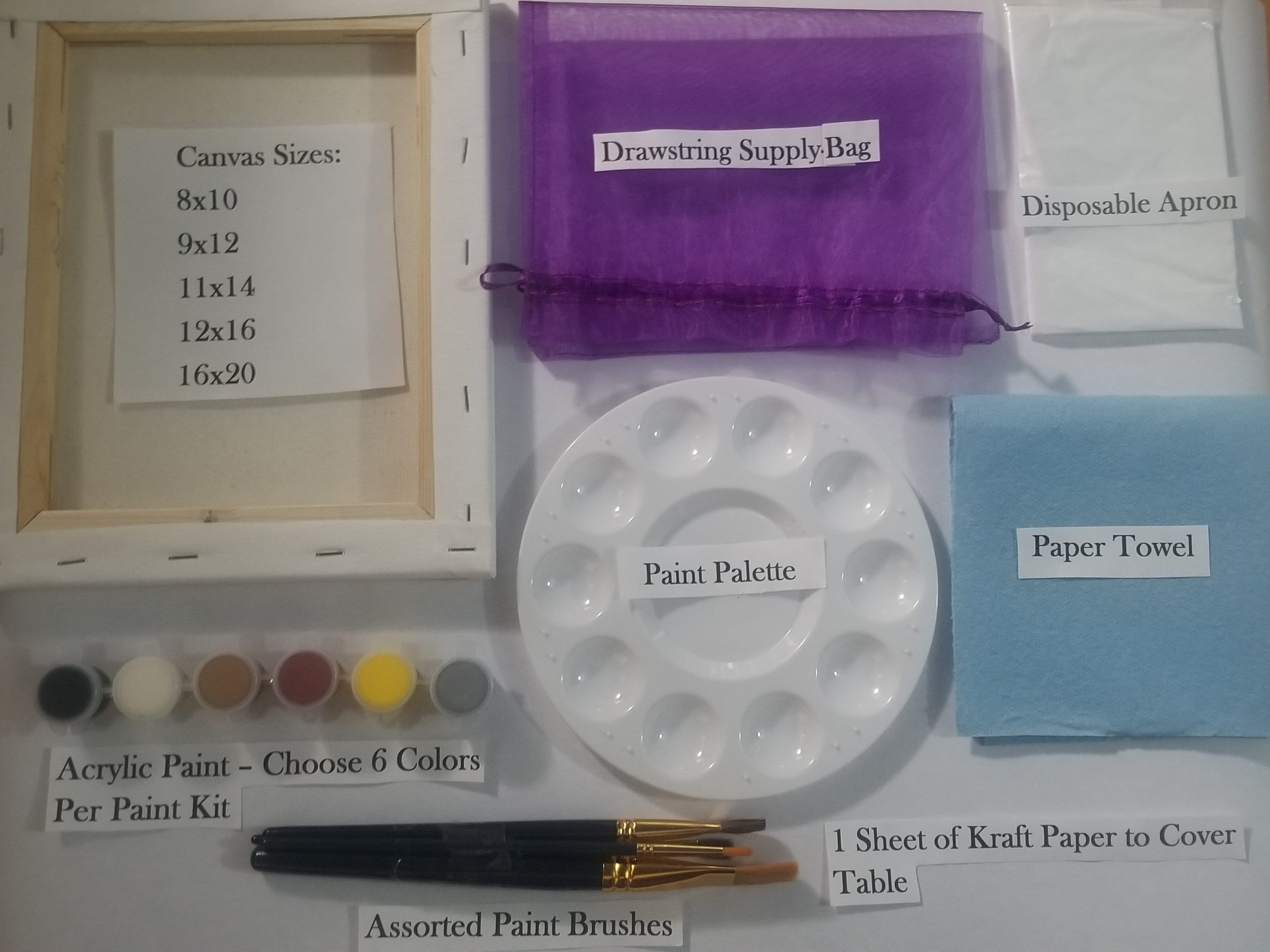 1 – Pre-Sketched/Pre-Drawn Canvas (8x10, 9x12, 11x14, 12x16, or 16x20) whichever canvas size you select.